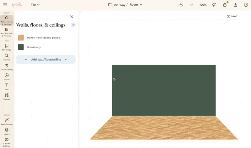 Once your space is set, you can begin adding products from My Things or Source.