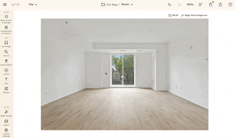 If you’d like, you can add architectural elements like doors and windows to further shape your space.