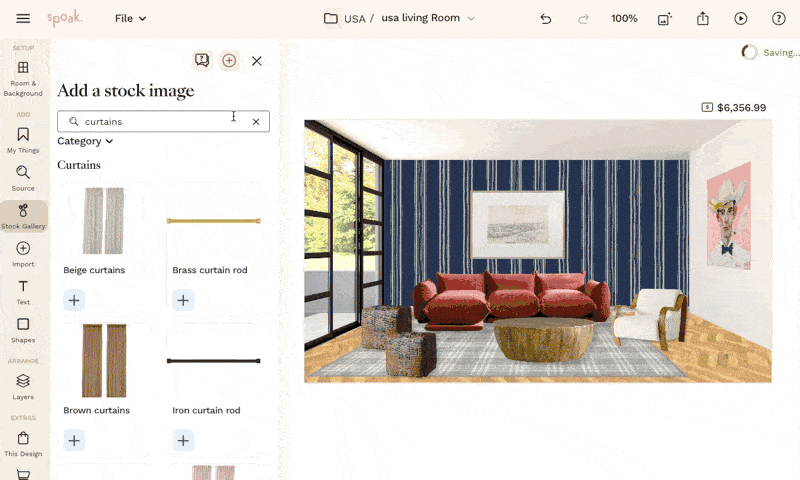 - Check out our available curtain options, add them to your design, and turn on Auto Perspective if you're hanging them on a side wall