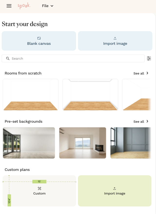 If you already have an image of your floor plan you want to add furniture to it rather than drawing all the walls from scratch, Spoak has made this as easy as 2 steps to make sure the scale is set correctly so that you can visualize exactly how things fit!