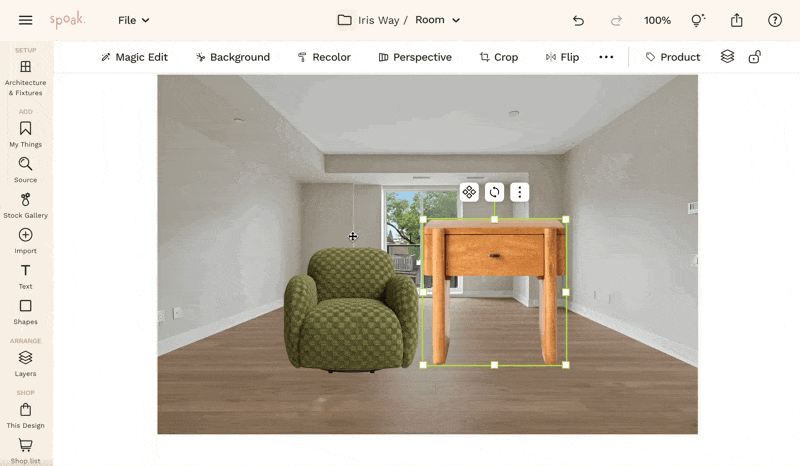 Imagining a chair you've been handed down reupholstered in something more modern? Maybe you want to show your client what the perfect sofa would look like in the bold blue color you've been dying to use? Bring your vision to life in just a couple clicks!