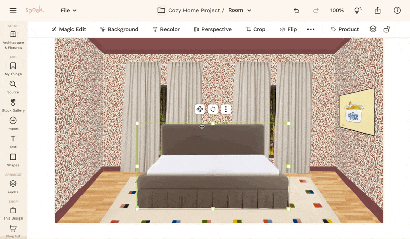 To change the perspective of your object (ie. laying a rug on the floor or hanging art on a wall, utilize our Auto-perspective tool instead!