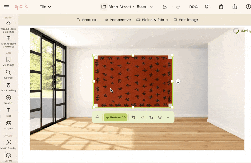 - Once you’ve added the rug to the canvas, click the Perspective in the top toolbar
